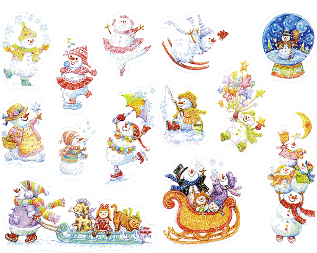 including these Glitter Snowmen Stickers.